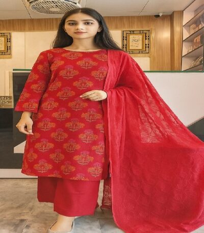 3 Pieces Embroidery Karandi With Chiffon Dupatta