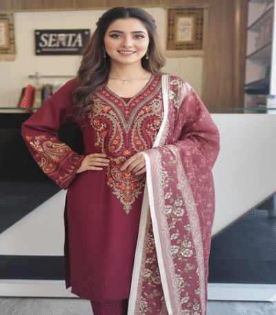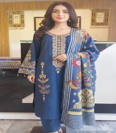 3 Pieces Khaddar Embroidery Suit Unstitched For Ladies