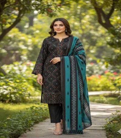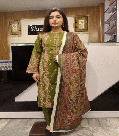 3 Pieces Embroidery Khaddar Unstitched Suit For Ladies