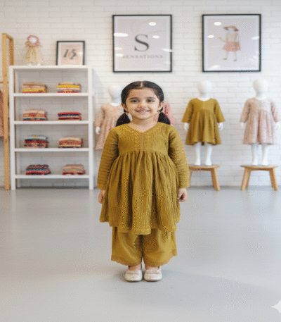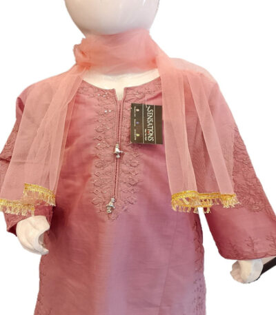 Winter Embroidery Chiffon Suit with Attached Shamiz Stitch For Kids