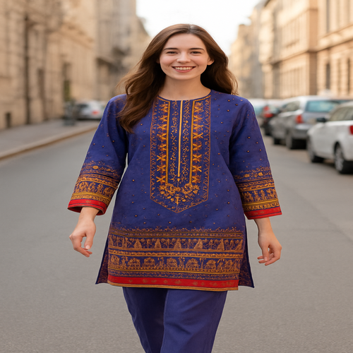 Embroidery Lawn Shirt.Printed Lawn Slippers.Printed Lawn BackFabric: Lawn