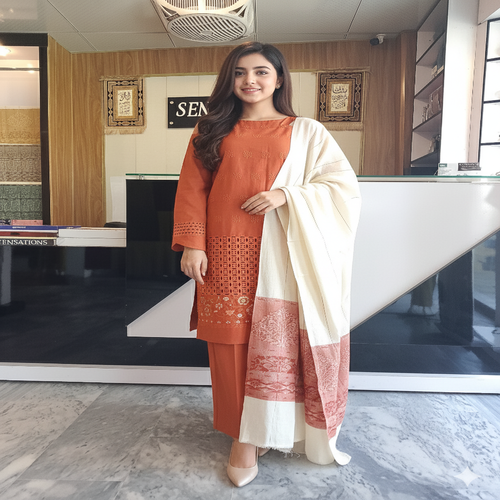 3 Pieces Embroidery Khaddar Unstitched Suit For Ladies