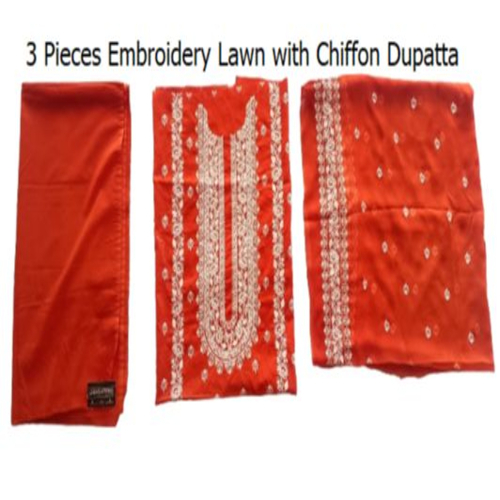 Unstitched Summer Embroidered Lawn Suit with Chiffon Dupatta