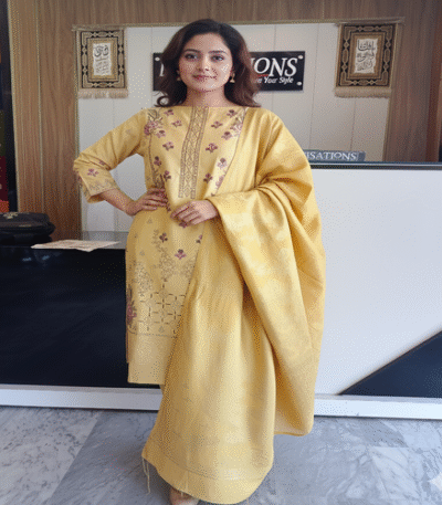 3 Pieces Embroidery Dhanak with Jacquard Zari Fancy Shawl